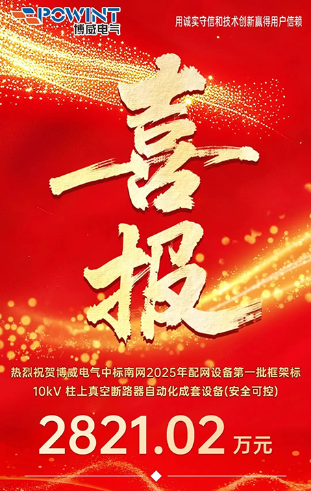 盛夏七月,博威電氣在南方電網(wǎng)2025年配網(wǎng)設(shè)備第一批框架招標(biāo)中再創(chuàng)佳績(jī),成功中標(biāo)10kV柱上真空斷路器自動(dòng)化成套設(shè)備(安全可控) 項(xiàng)目,金額達(dá)2821.02萬(wàn)元。